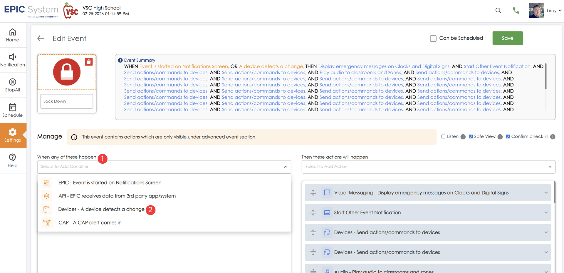 Click into the Event you want your new input to trigger. In this example we will use Lock Down.