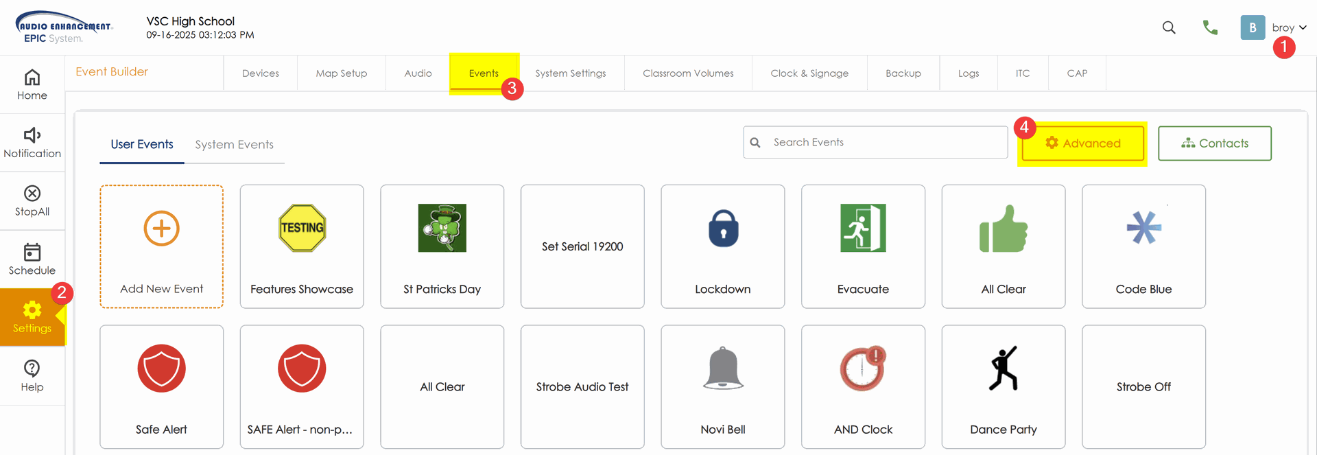 - Click on the Event you want to add Contact notification to. In this example I'm adding to regular SAFE Alert.