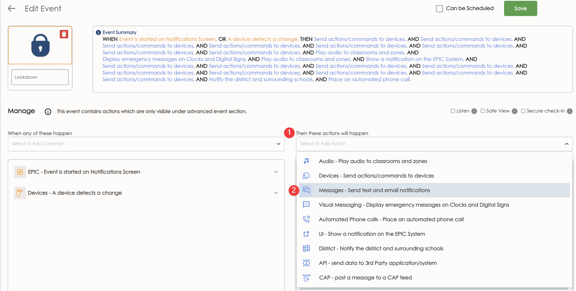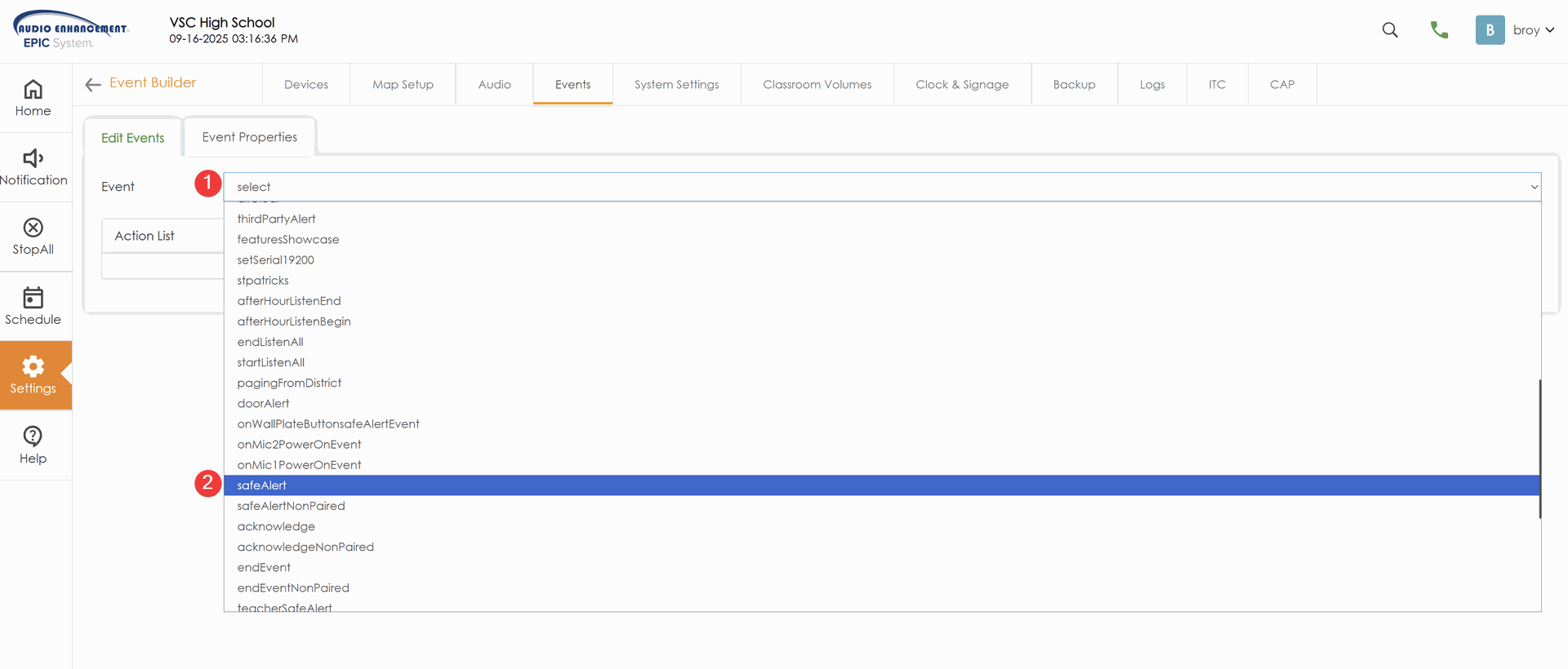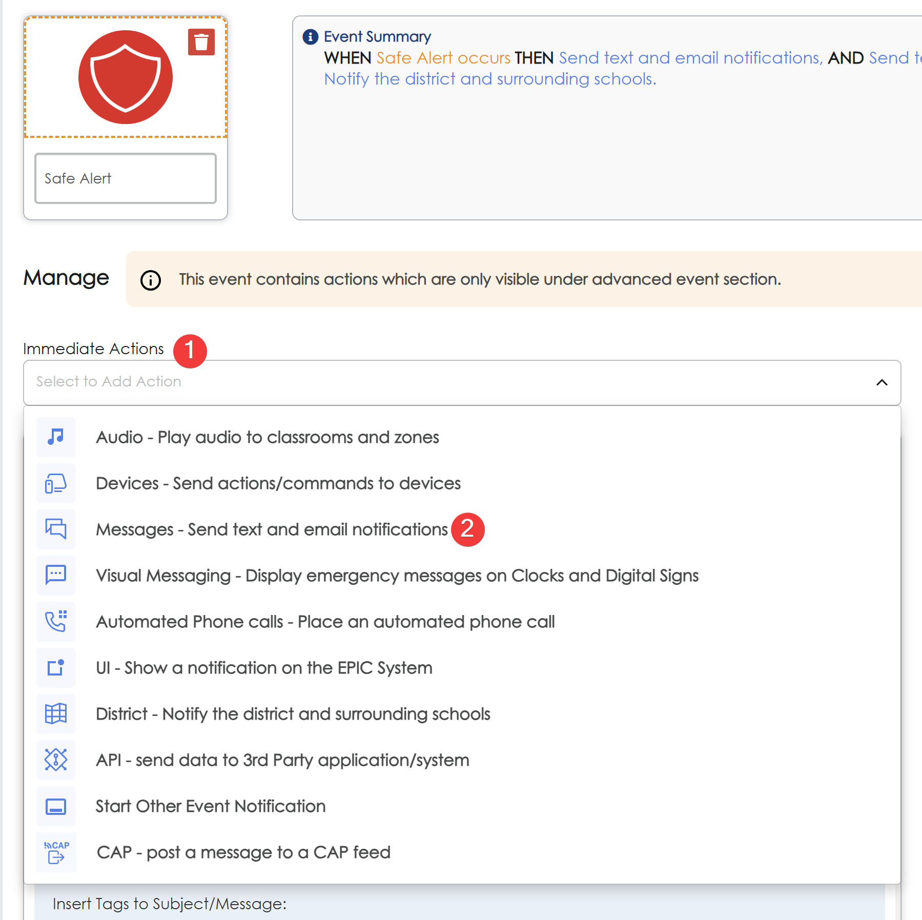 - Select your event, in this example we are editing SAFE Alert notifications