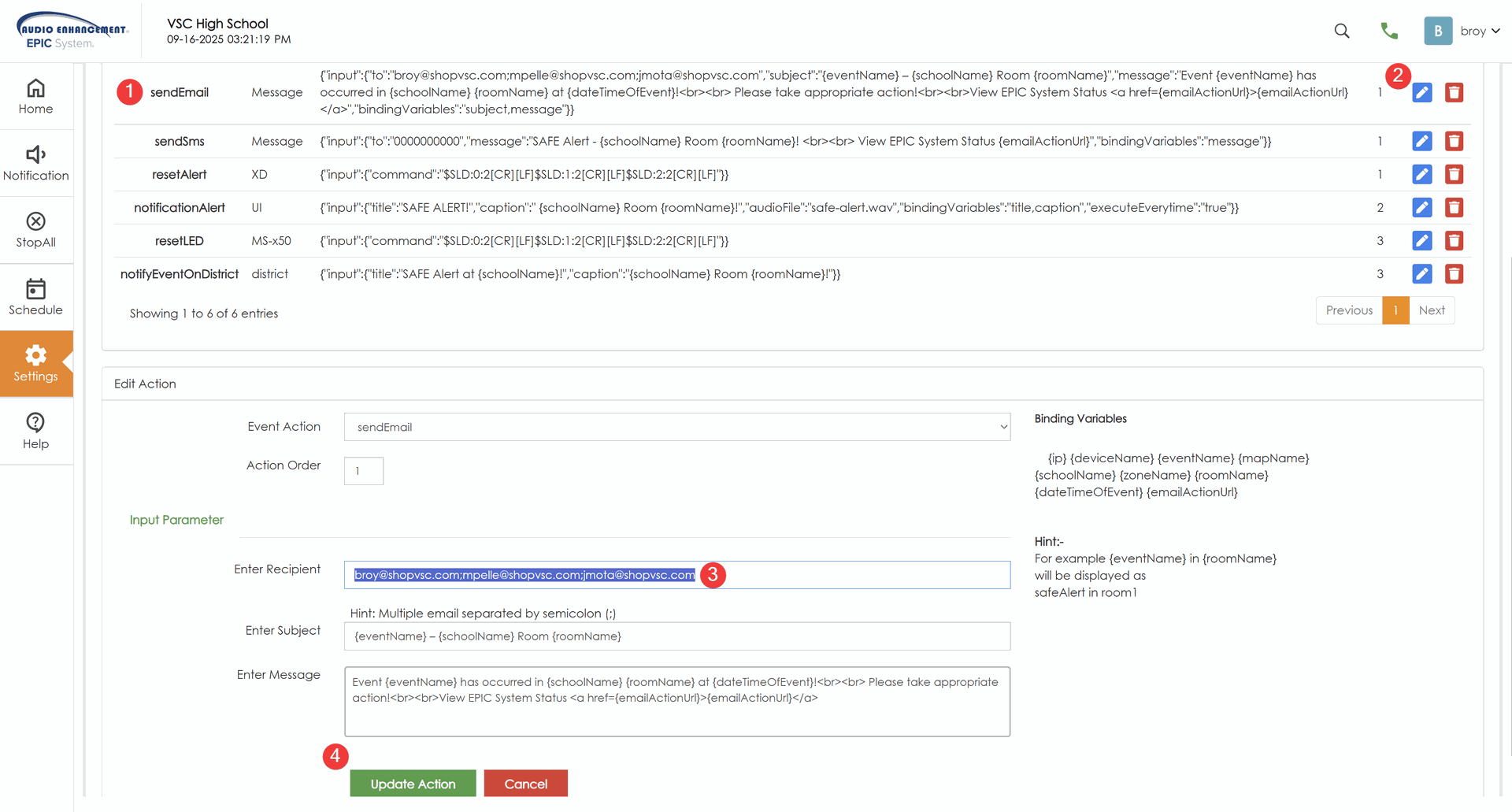 - {emailActionUrl} - This would only be for Safer Alert I believe, the idea would be if a SAFE Alert is initiated, the URL would direct you to EPIC with an option to Escalate to a Lockdown, or if it's not a SAFE Alert it would just take you to EPIC to view what's happening.