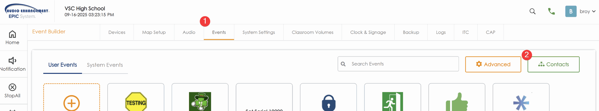 - Return to the new regular Event Builder by click Events at the top of the page