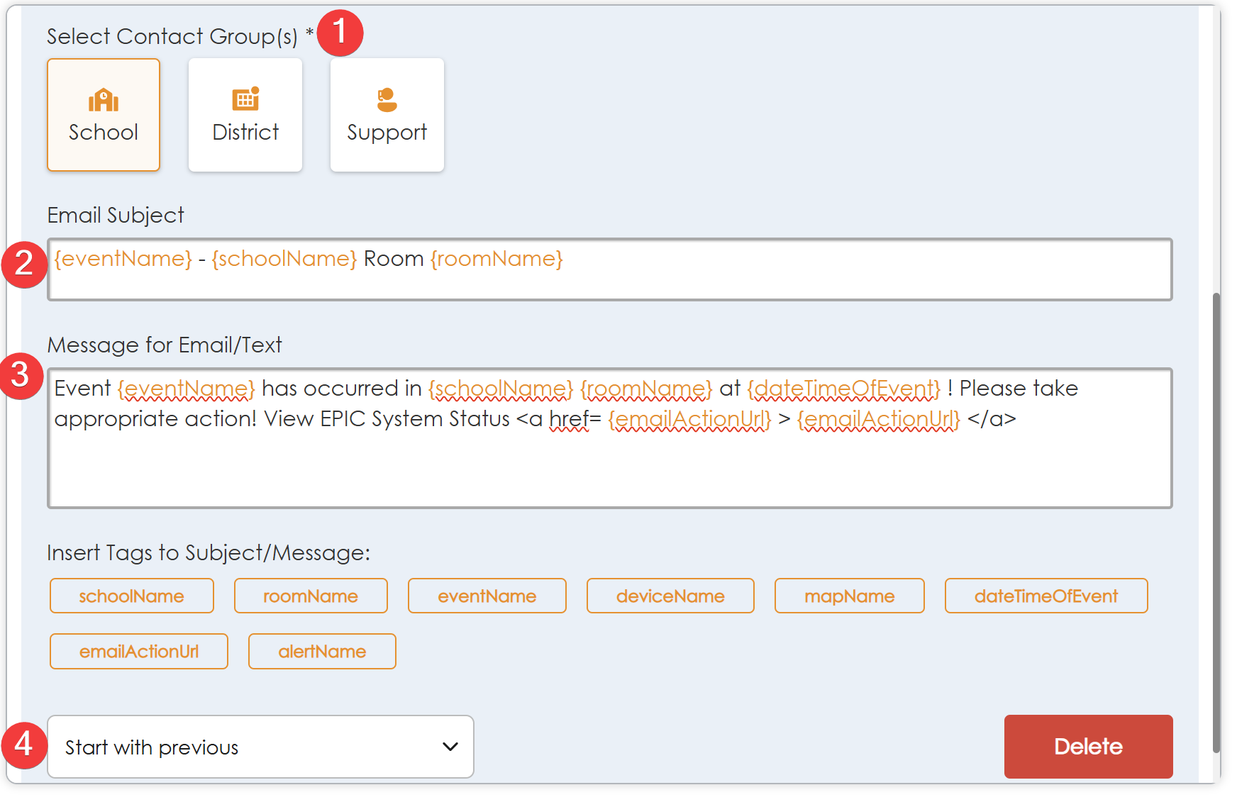 - Support - Should be personnel who are familiar with the backend system of EPIC, this group is typically applied to system monitoring events in case devices go offline.